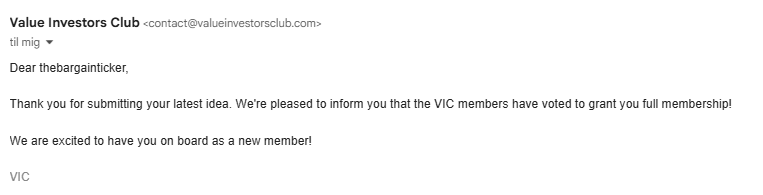 First and foremost, I’m incredibly proud and grateful to have been accepted into the Value Investors Club (VIC), founded by Joel Greenblatt of Gotham Funds and John Petry of Sessa Capital. A personal milestone!